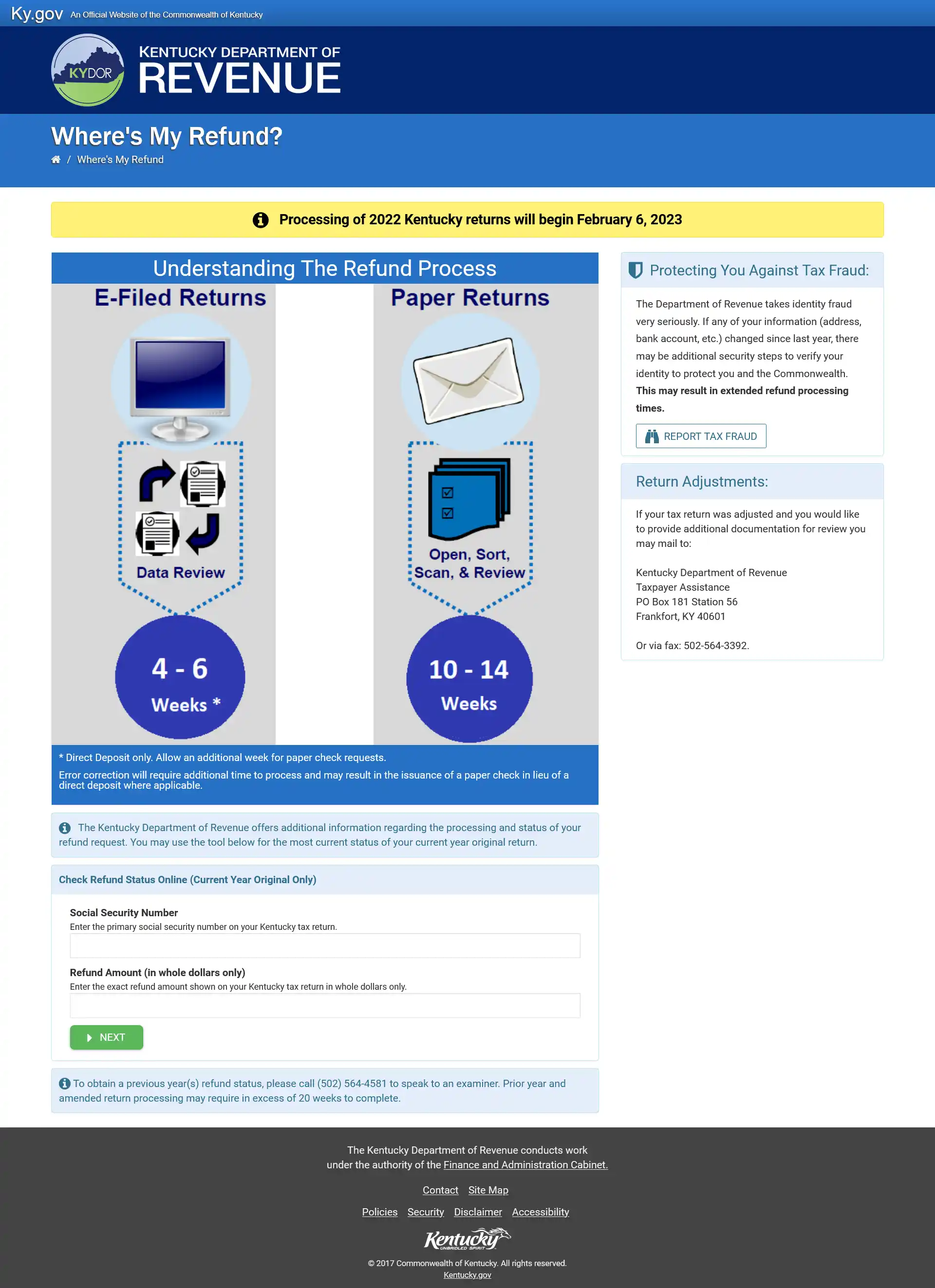 According to the Kentucky Department of Revenue, refund processing times are as follows: